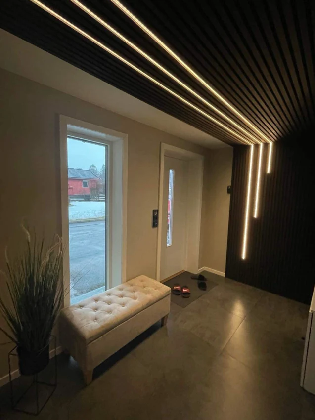 Støydempende løsninger for bedre inneklima. Profesjonell installasjon av akustiske paneler og treverk spiller.